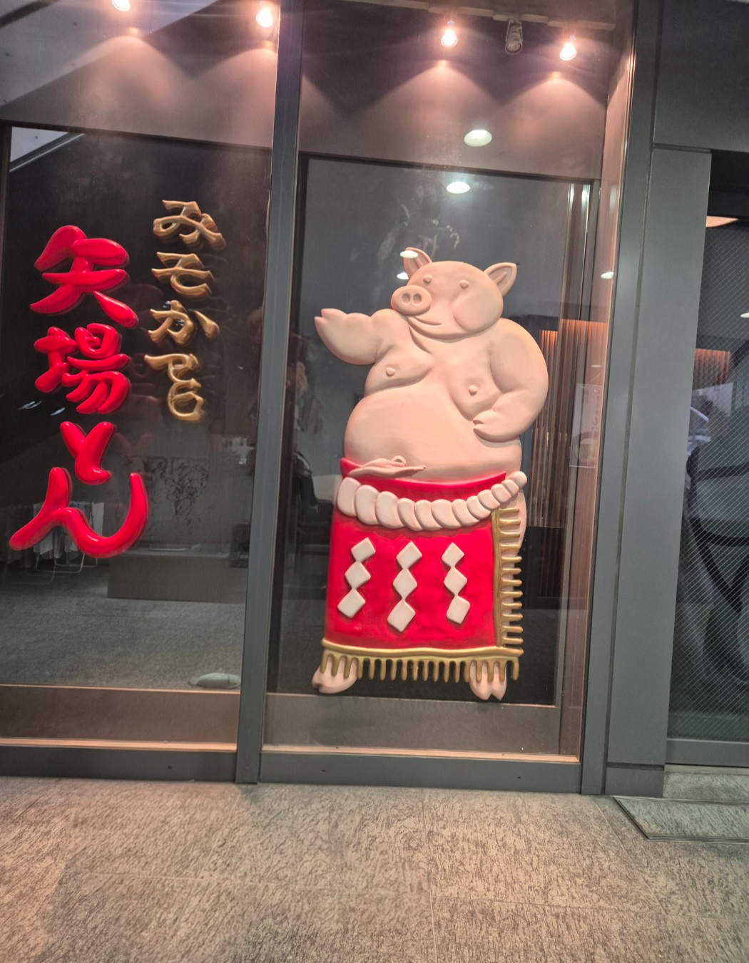 가게 앞으로 내려가보면 야바톤의 마스코트인 돼지 캐릭터가 맞이해줍니다.