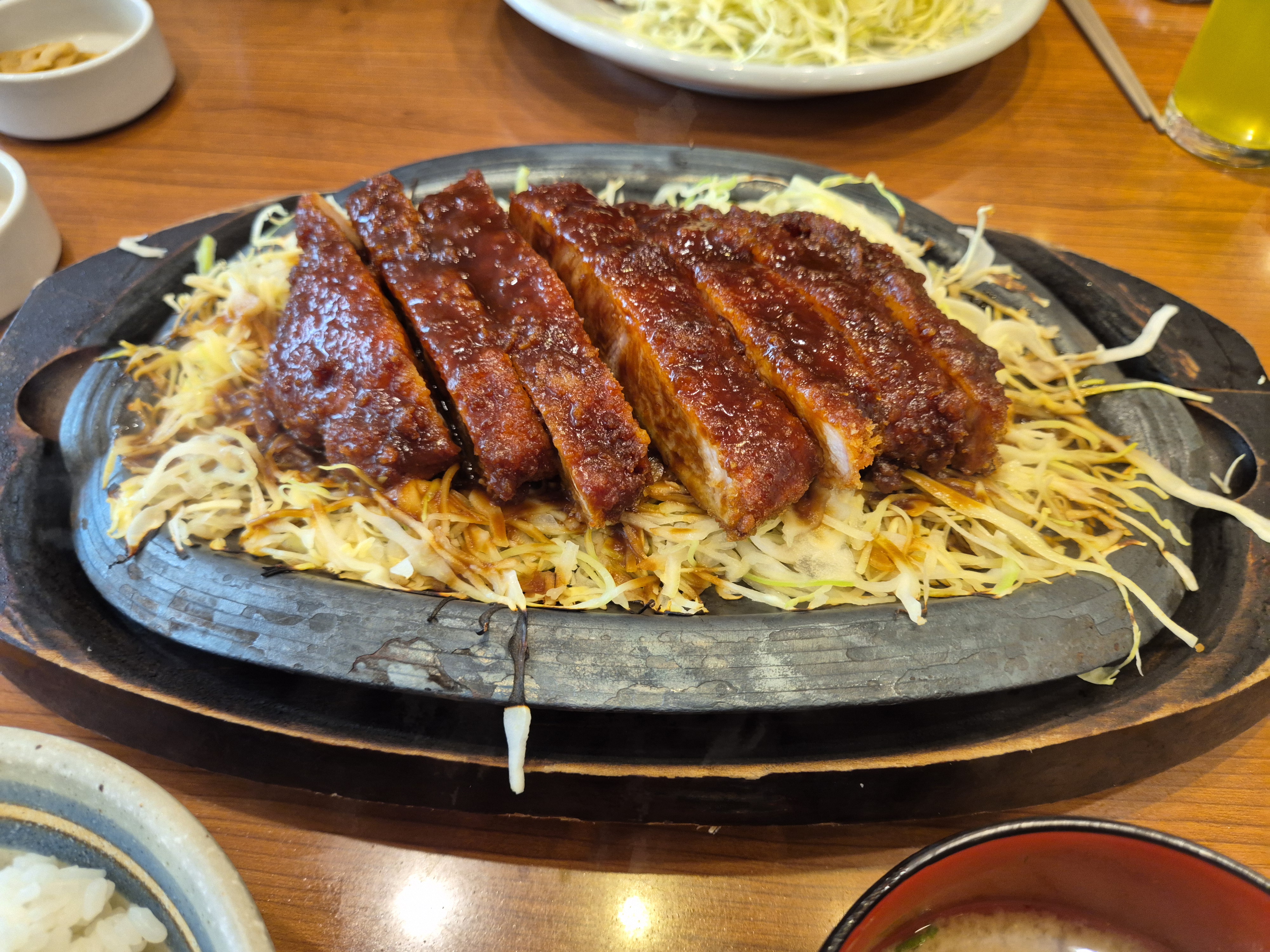 두툼한 돈카츠 위에 나고야식 미소 소스를 듬뿍 얹어 주는 것이 특징입니다.